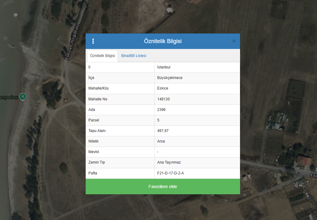 İSTANBUL / BÜYÜKÇEKMECE - ESKİCE - 2396 ADA - 5 PARSEL - 497M2 -